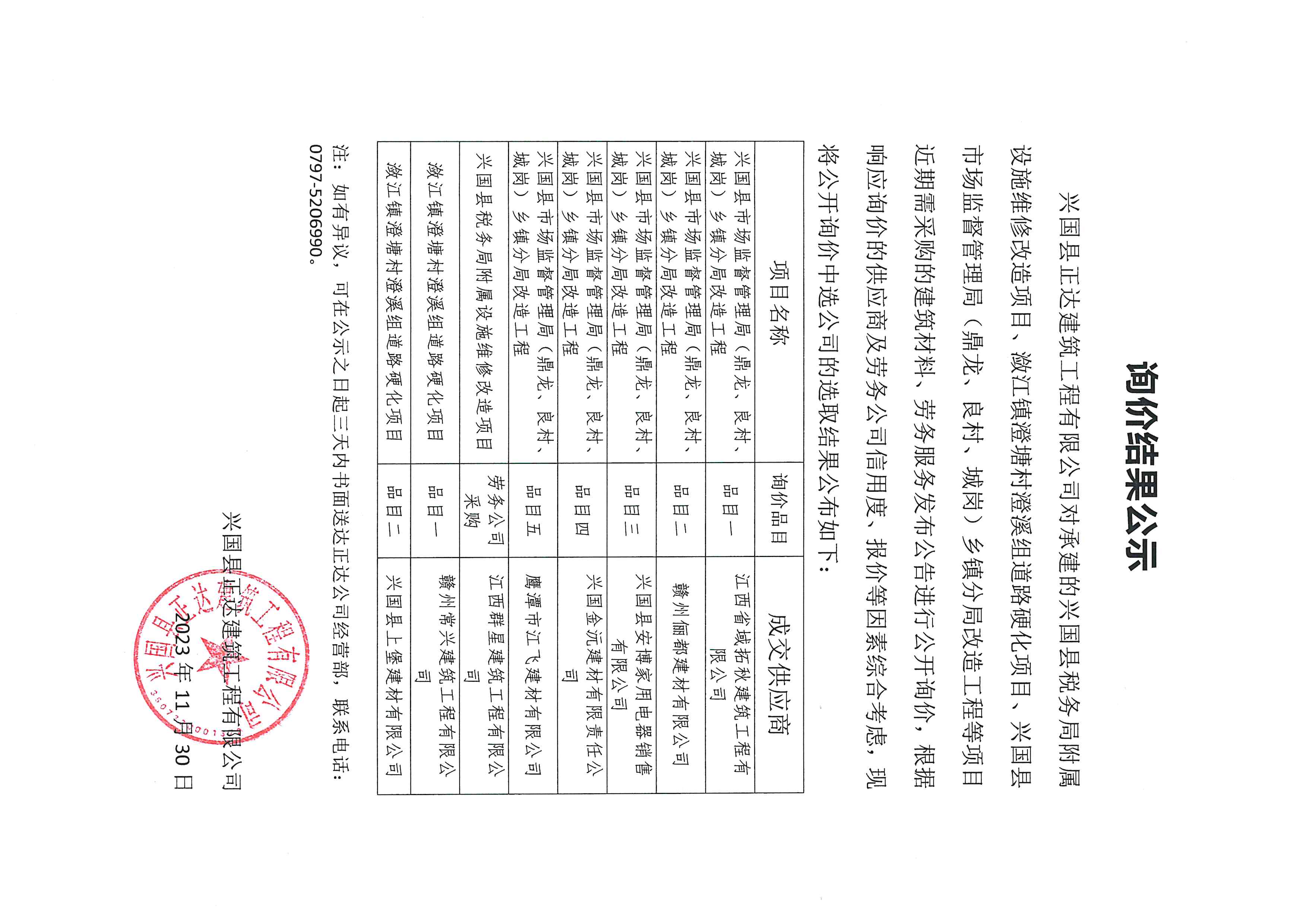 興國縣稅務局附屬設(shè)施維修改造等項目材料、勞務服務公開詢價結(jié)果公示