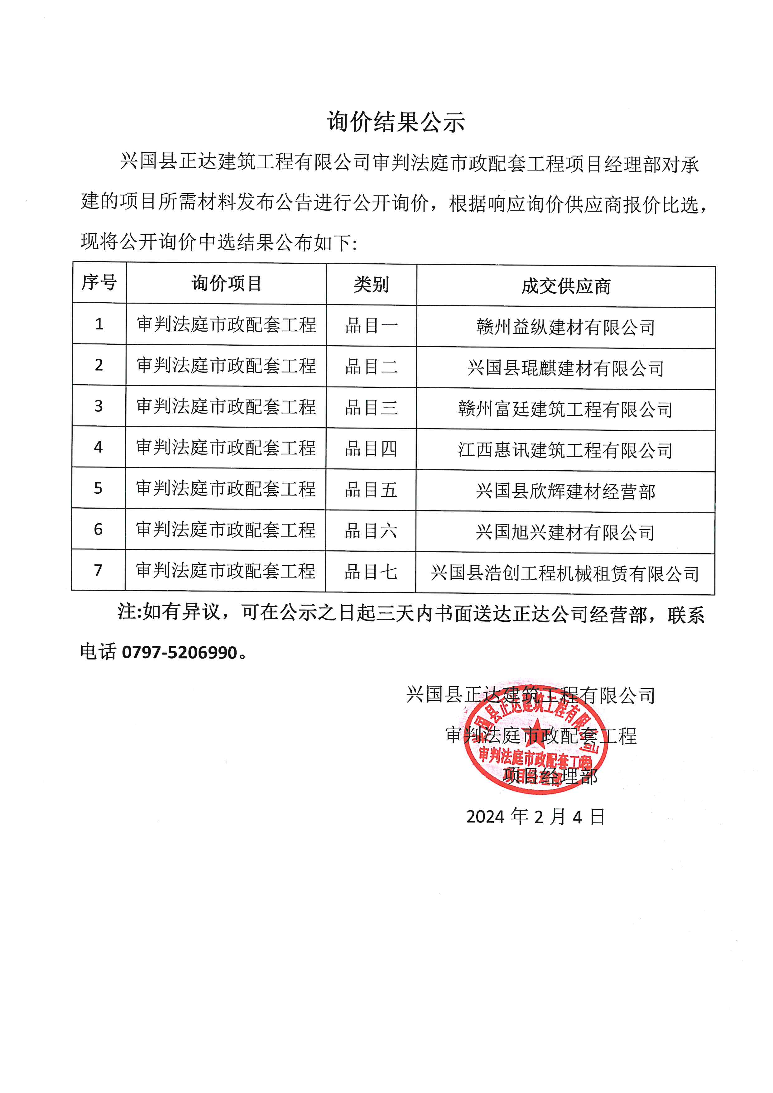 審判法庭市政配套工程項(xiàng)目公開詢價(jià)中選結(jié)果